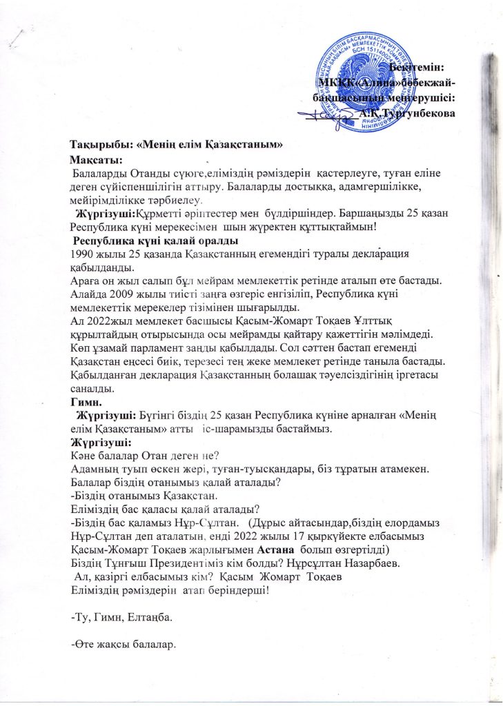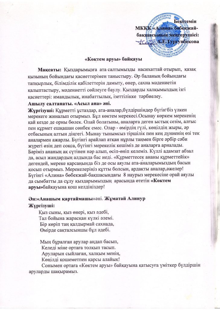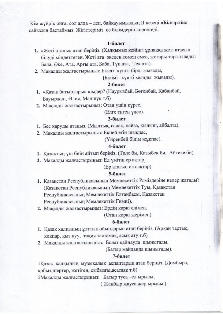«БІРТҰТАС ТӘРБИЕ» БАҒДАРЛАМАСЫ ІС-ШАРАЛАРЫ