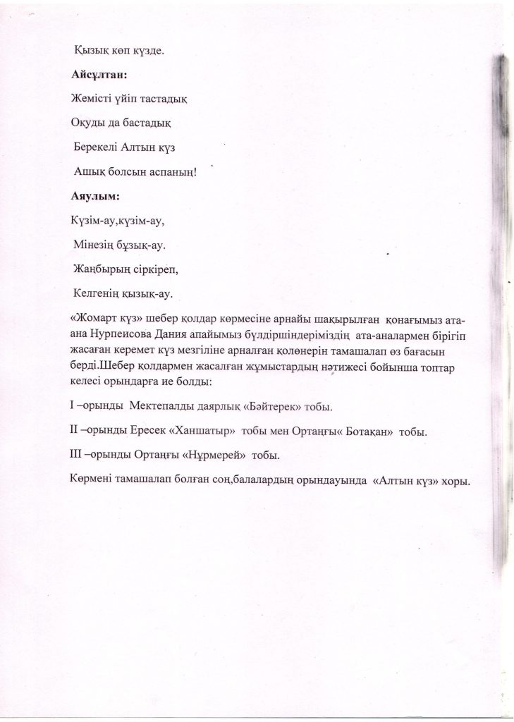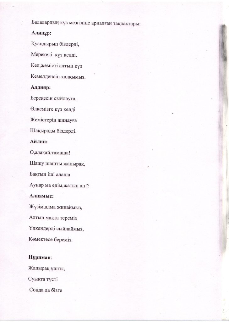 БАЛАЛАРДЫҢ АС МӘЗІРІ