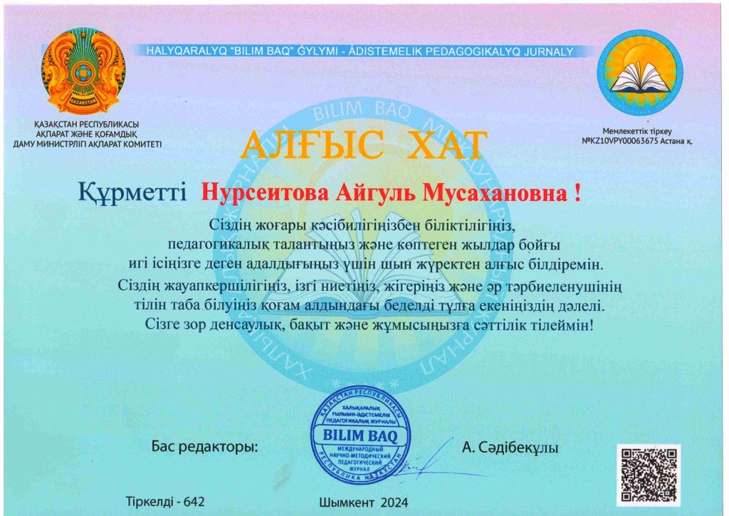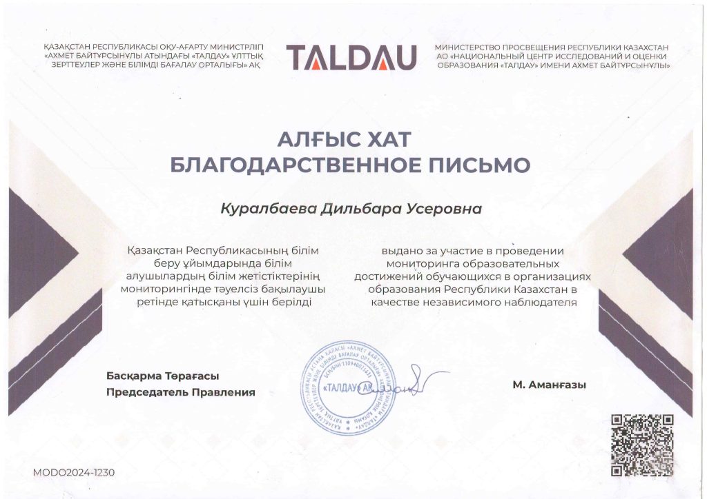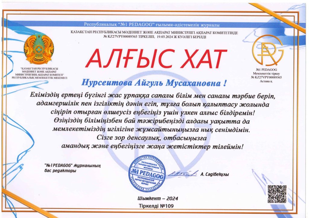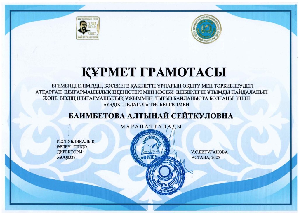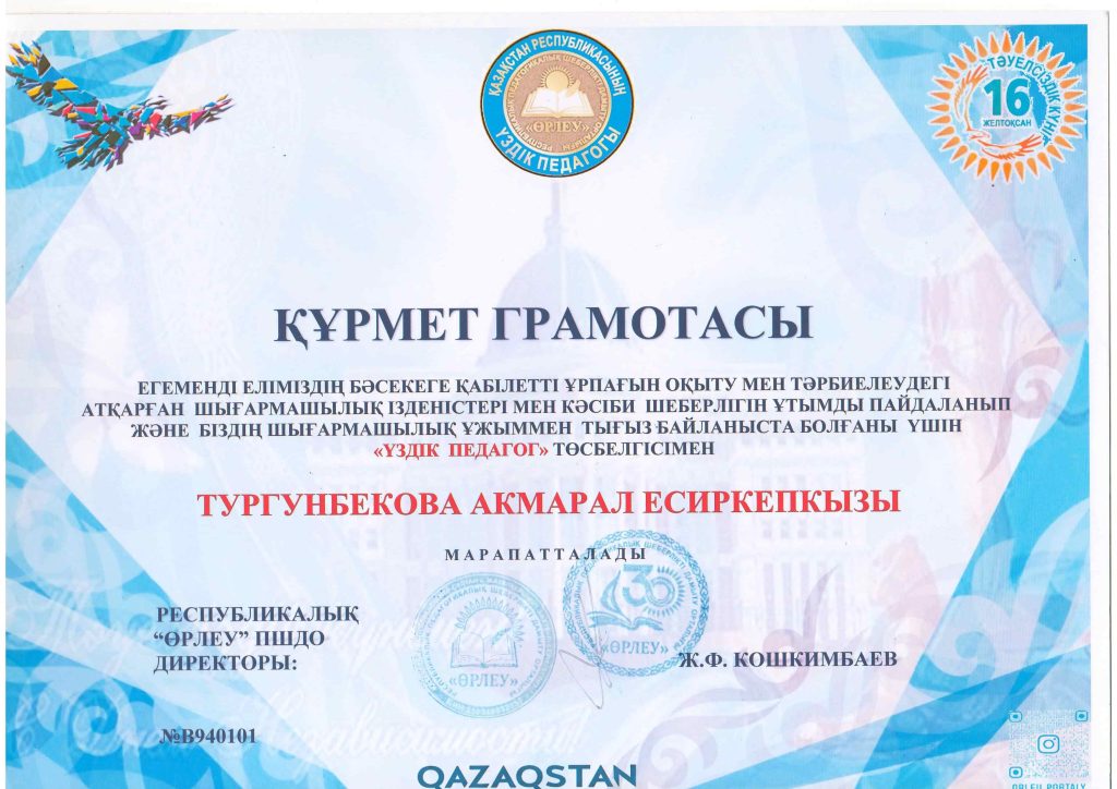 ПЕДАГОГТАРДЫҢ БІЛІКТІЛІК АРТТЫРУЫ