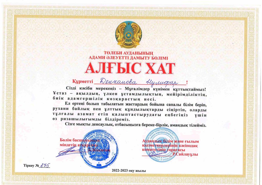 ПЕДАГОГТАР ЖЕТІСТІКТЕРІ